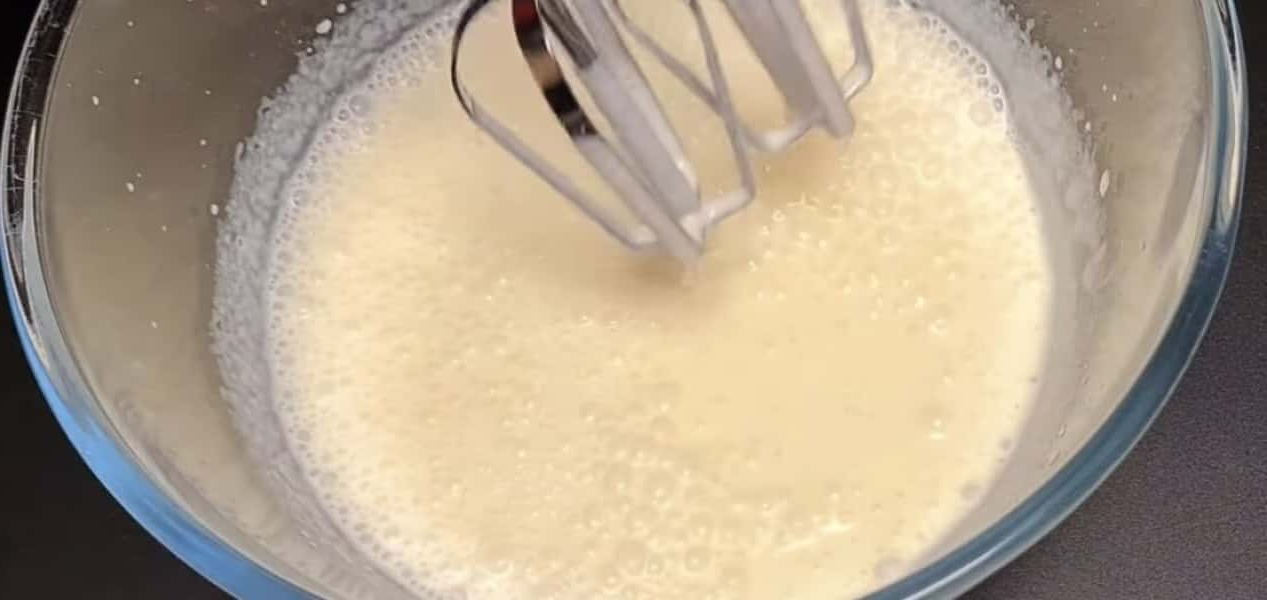У чисту ємність вливаємо вершки, додаємо цукрову пудру та збиваємо міксером.
