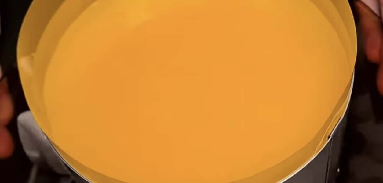 Вливаємо в апельсиновий сік, перемішуємо та вливаємо на крем.