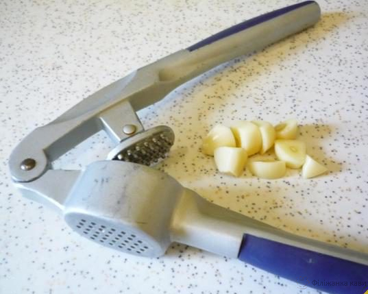 Часник пропустіть через прес.