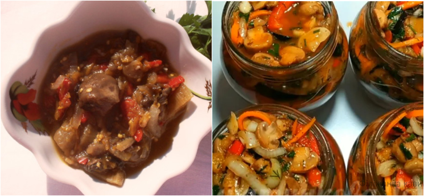 Як приготувати салат з баклажанів з печерицями
