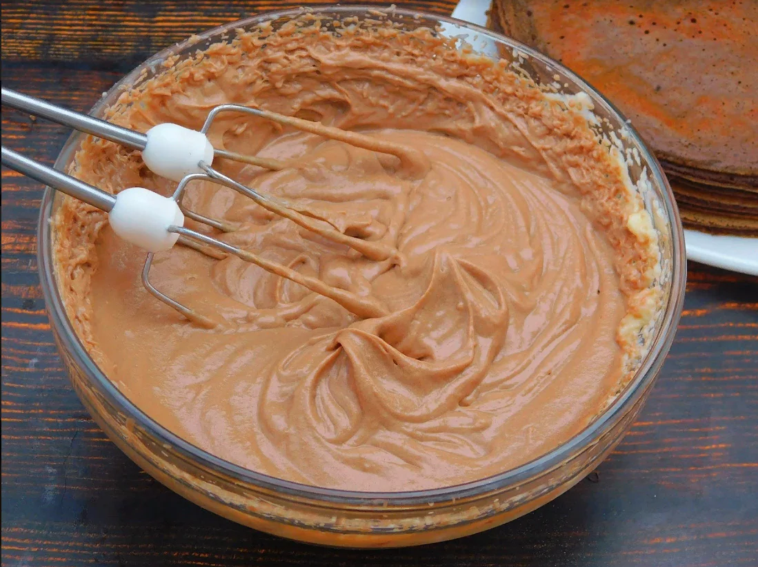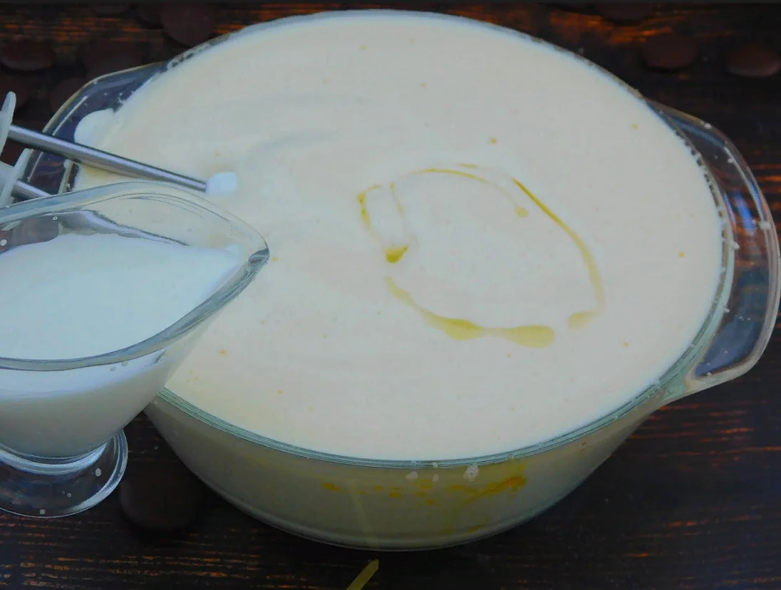 - Збити міксером та по столовій ложці додавати холодну заварну суміш.