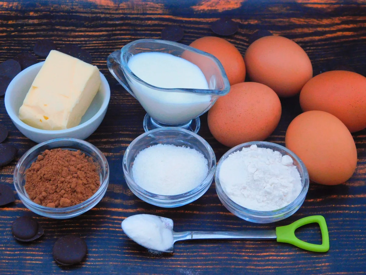 - Змішати, просіяти борошно та какао. Вводити порціями, перемішуючи міксером на малих обертах. Всипати розпушувач.