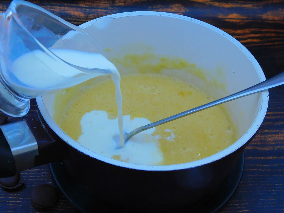 - Змішати, щоб не було грудочок. Ввести молоко невеликими порціями.