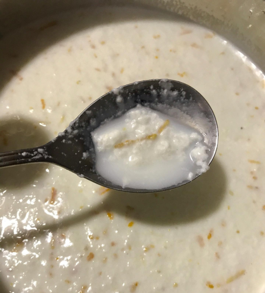 4. Продовжуйте мішати. Якщо здається, що молоко погано згортається додайте ще трохи оцту.