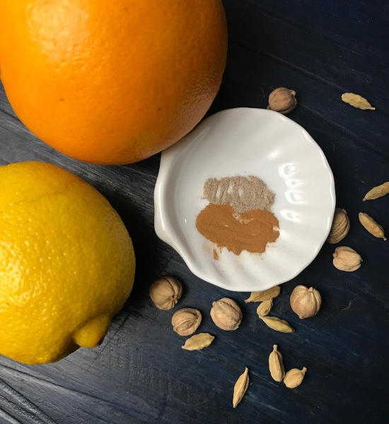 5. Додати цукрову пудру, сіль, корицю, кардамон. Добре перемішати.