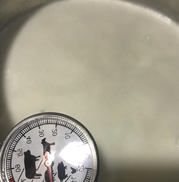 1. Молоко гріємо до температури 92-94*. Вимкніть.