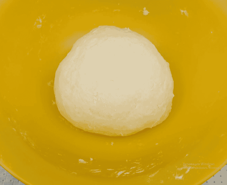 Далі додаємо просіяне борошно. У мене пішло 420 г . Замішуємо м’яке тісто, яке не липне до рук. Обминаємо його 1-2 хв., щоб досягти гладкої однорідної консистенції.
