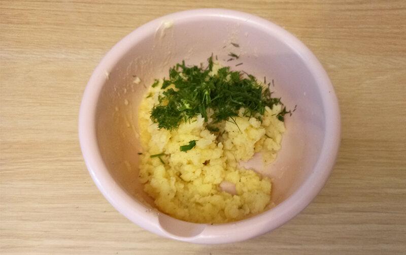 Ну ось картопляна начинка готова. Вона в міру солона і перчена, ситна і з приємним кропним присмаком.