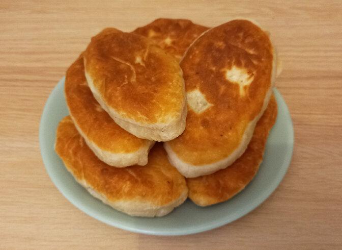 Ось всі пиріжки я посмажила. Виклала їх на тарілку. Тепер можна нести до столу, поки вони не охололи.