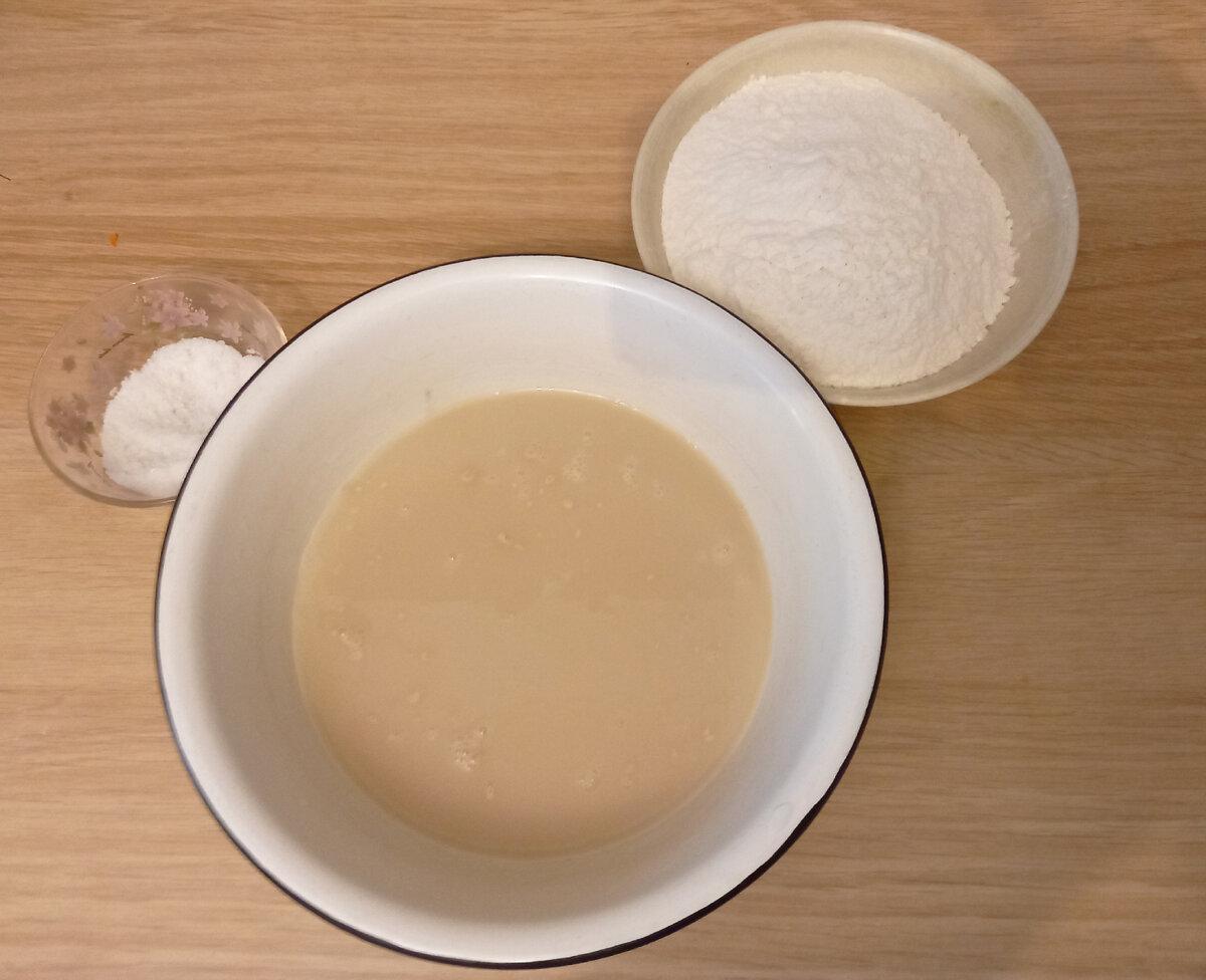 Довгого бродіння дріжджів я чекати не стала. Вилила суміш в глибоку миску. Всипаю в неї сіль і половину просіяного борошна.