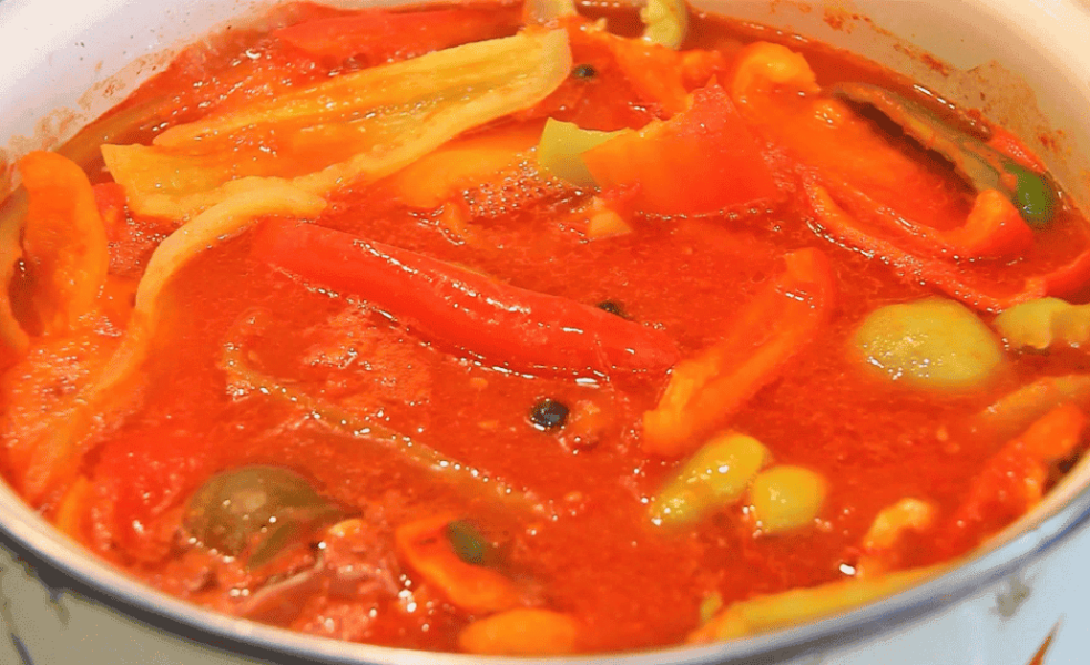 У томатну основу покладіть шматочки перцю, ще раз все доведіть до кипіння і після проваріть 15 хвилин.