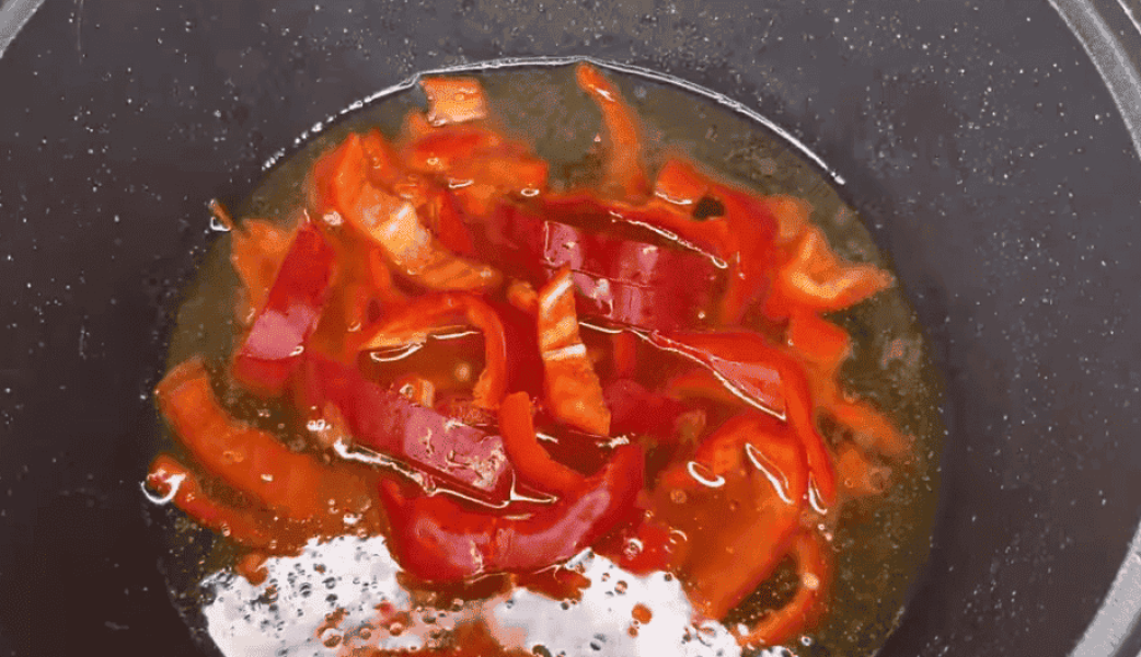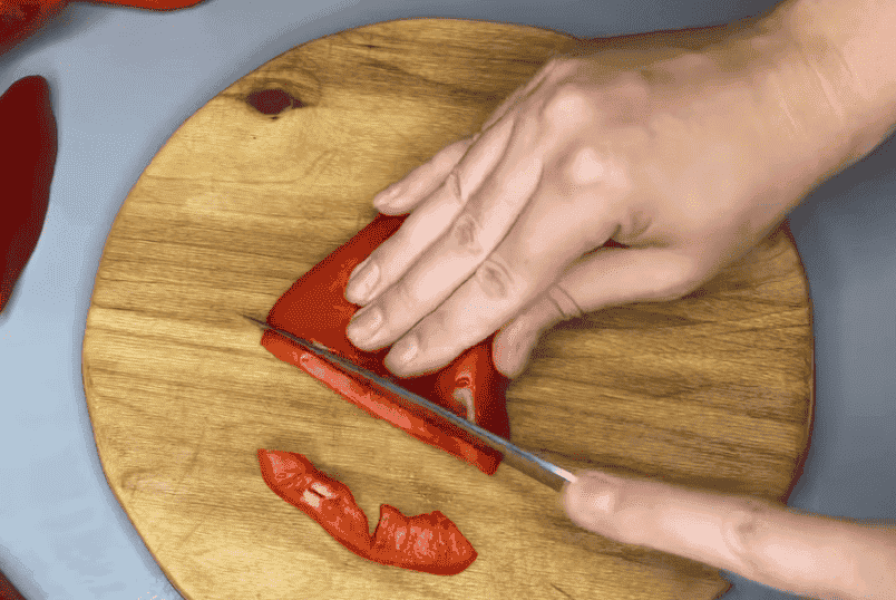 4. Солодкий перець очистити від плодоніжок та насіння, нарізати смужками або великими шматочками.