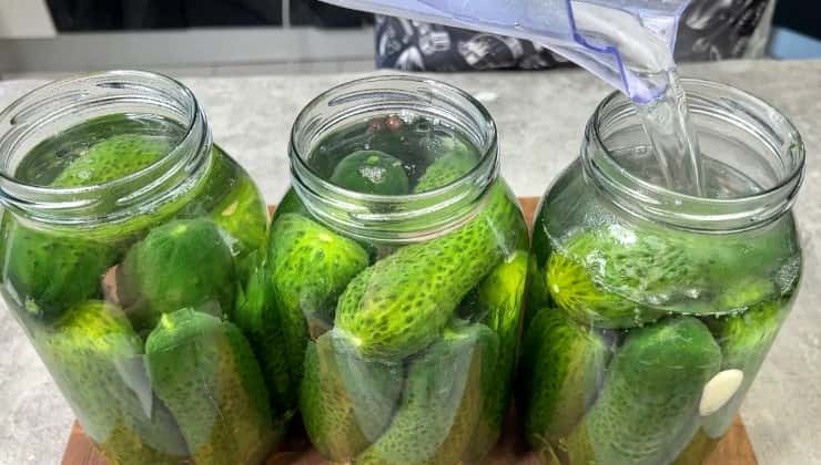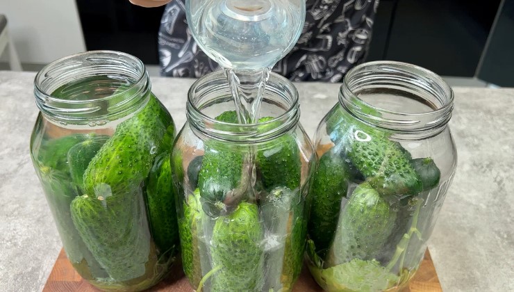 Воду вливаємо поступово та акуратно, щоб банки не тріснули.
