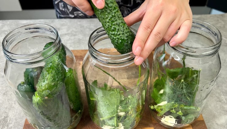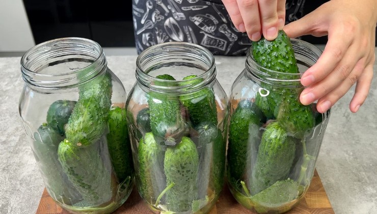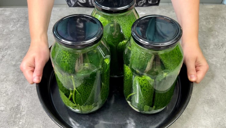 Огірочки попередньо замочуємо на 2-3 години у холодній воді, якщо вони щойно з грядки, можна і не замочувати.