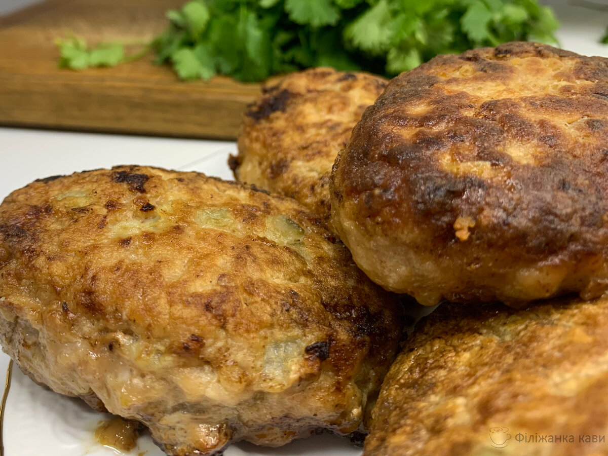 Смачні, соковиті, апетитні котлети готові. Аромат приголомшливий.