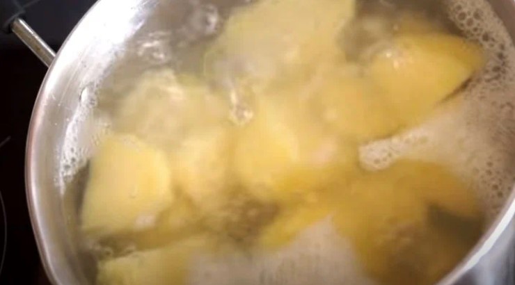 - Як тільки картопля закипить, засікаємо 5-7 хвилин з моменту закипання, цього достатньо. Воду зливаємо.