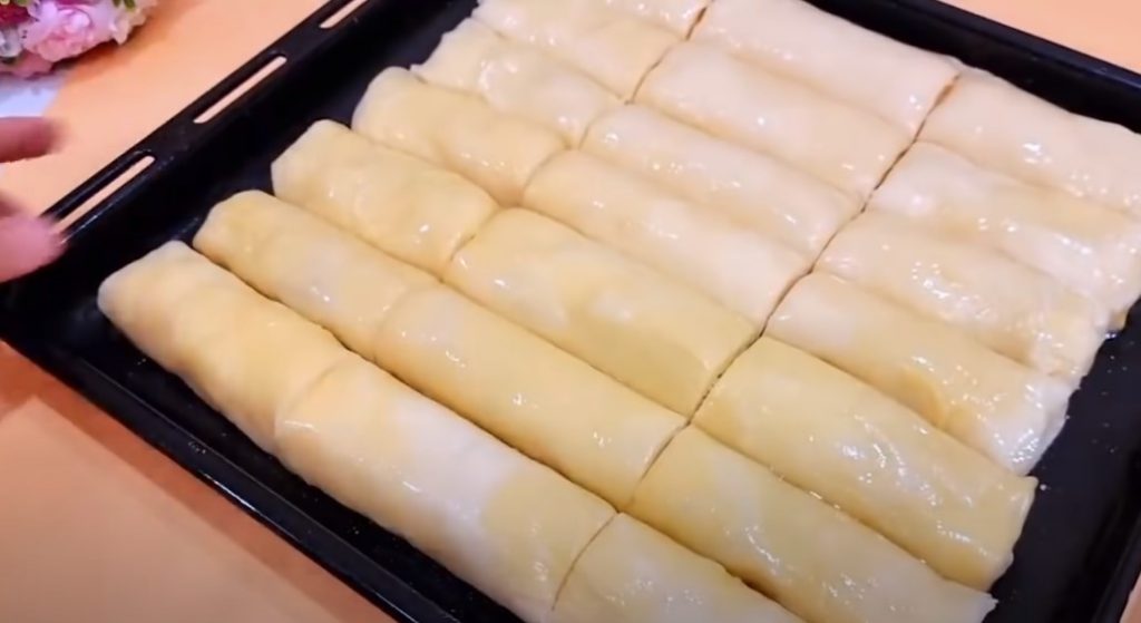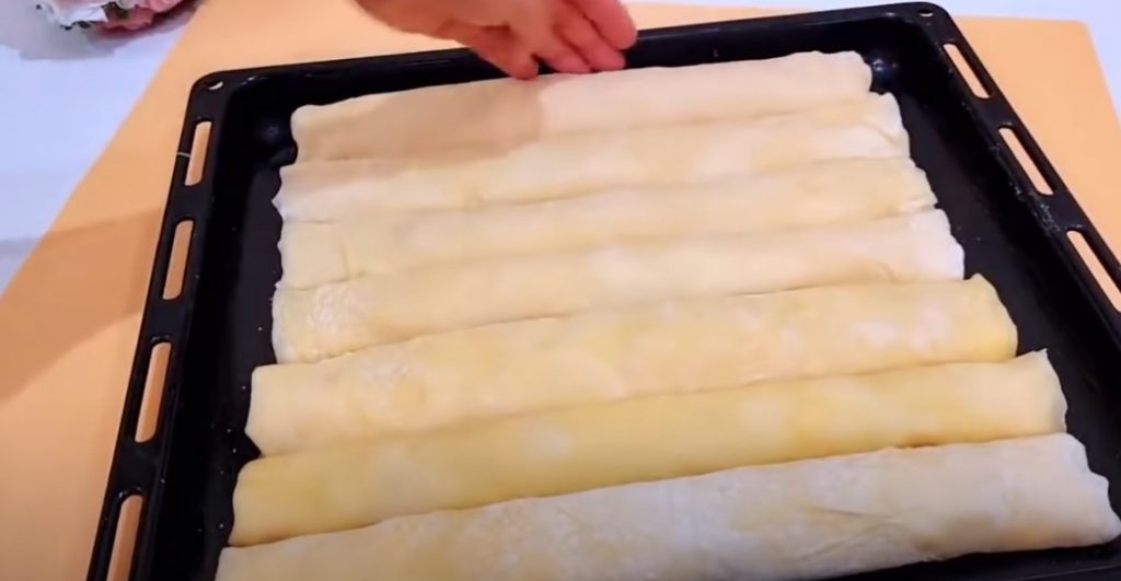 Рулетики виходять м’якими і ніжними, тісто листкове, з хрусткою скоринкою, добре пропікається. Ідеальна закуска на святковий стіл. Смачно ще виходить із грибною начинкою.