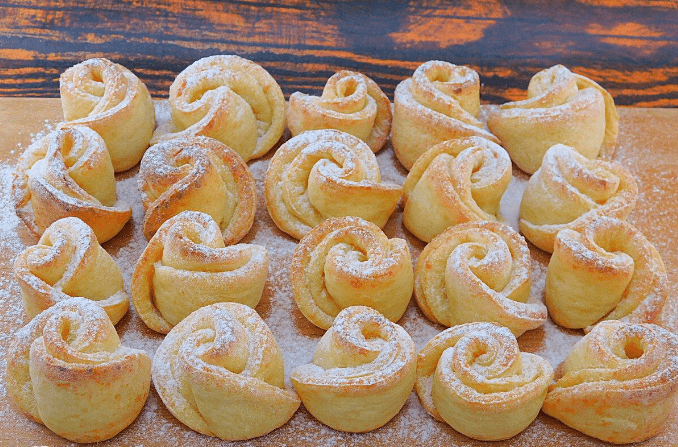 Сирне печиво Квіточки посипати цукровою пудрою. Приємного чаювання!