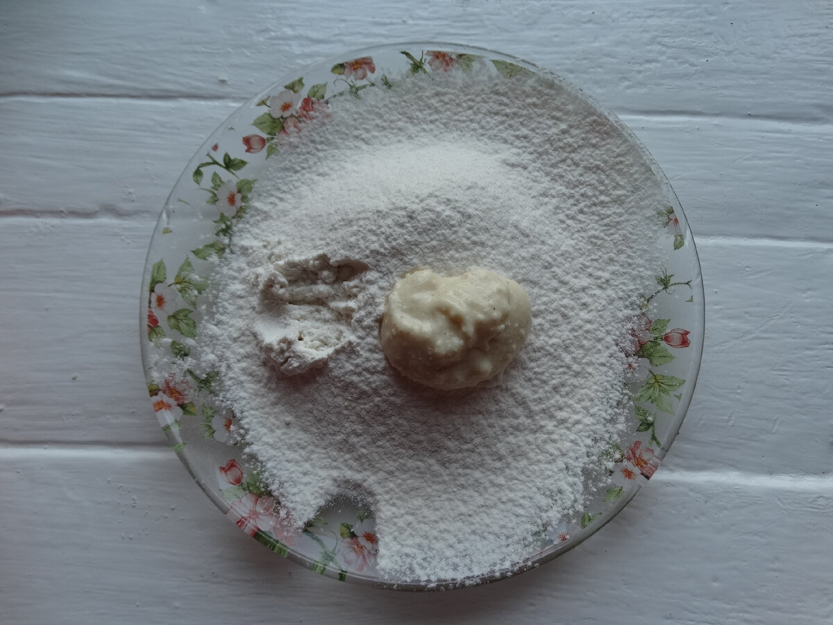 Обвалюємо шматочок тіста в борошні, формуємо кульку.