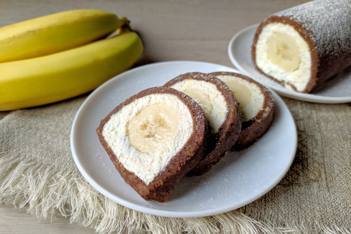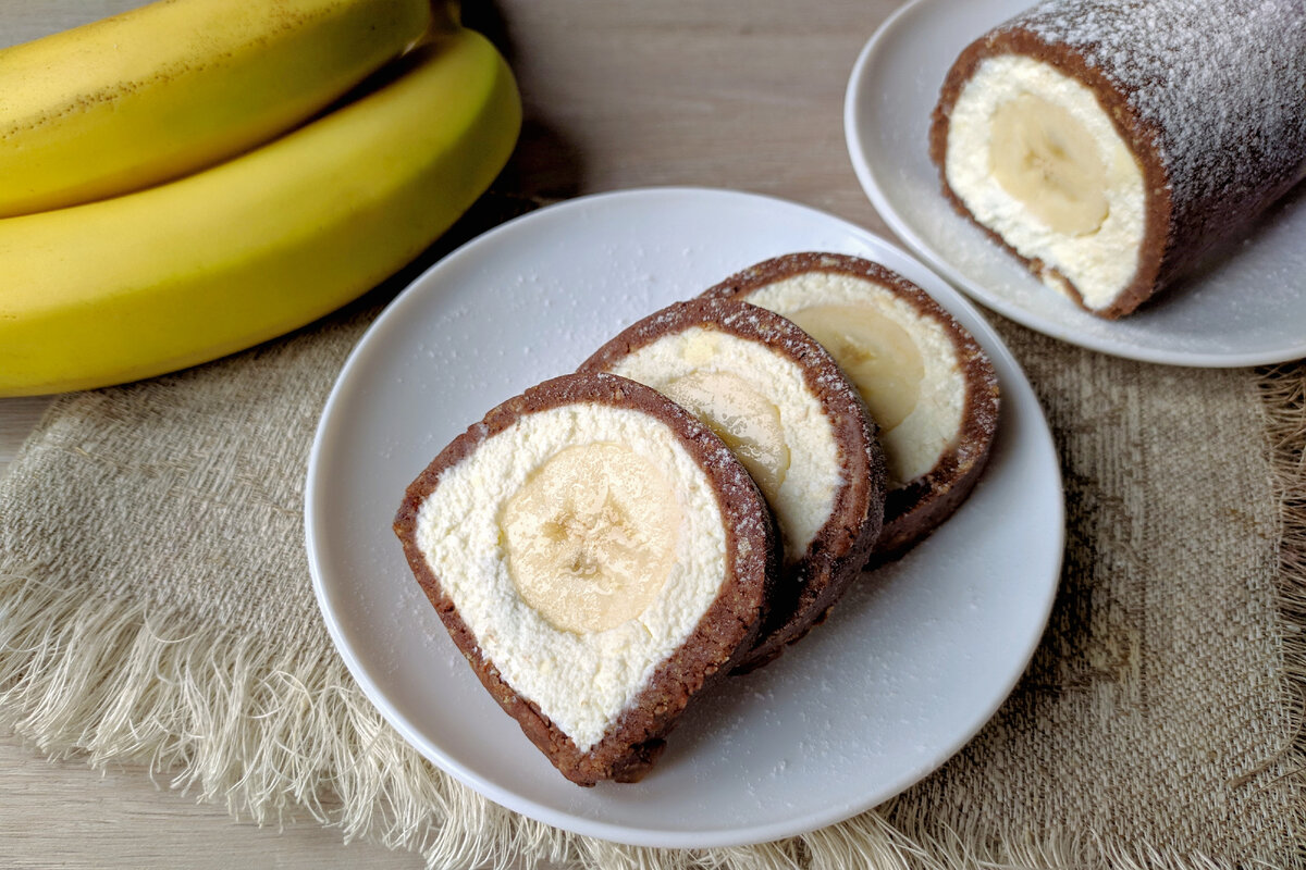 8. Сирно-банановий рулет готовий. Зверху за бажанням посипаємо цукровою пудрою. Приємного чаювання!