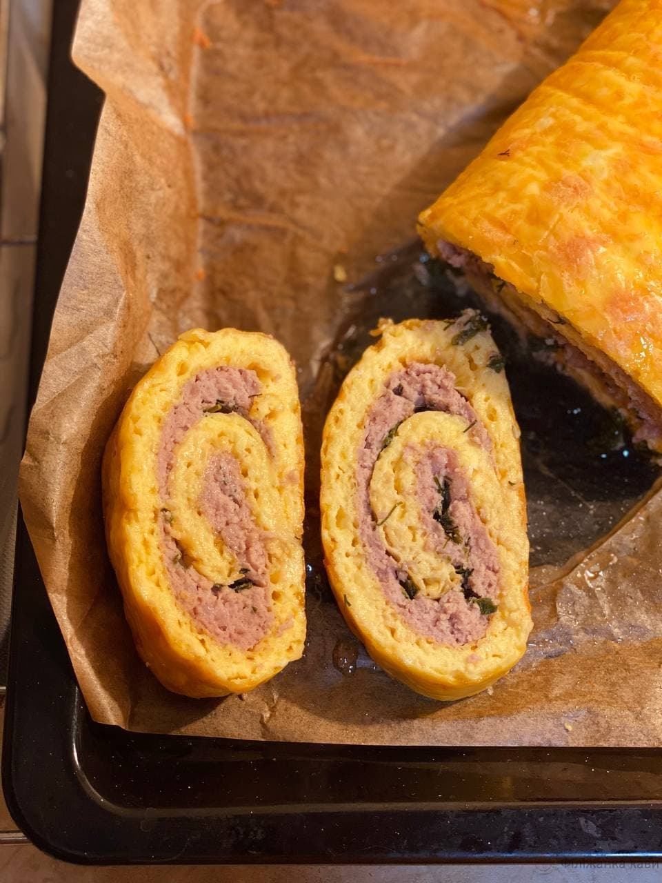 Рулет дууужеее смачний як гарячим так і в холодному вигляді, добре тримає форму. Теплим він має ніжний смак, а коли схолоне то стає більш стабільний, але не менш смачний.