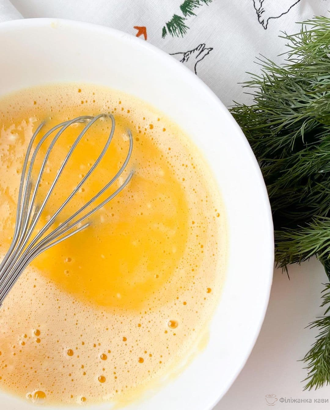 - Приготуйте основу рулету. Яйця та борошно змішайте до однорідності, посоліть.