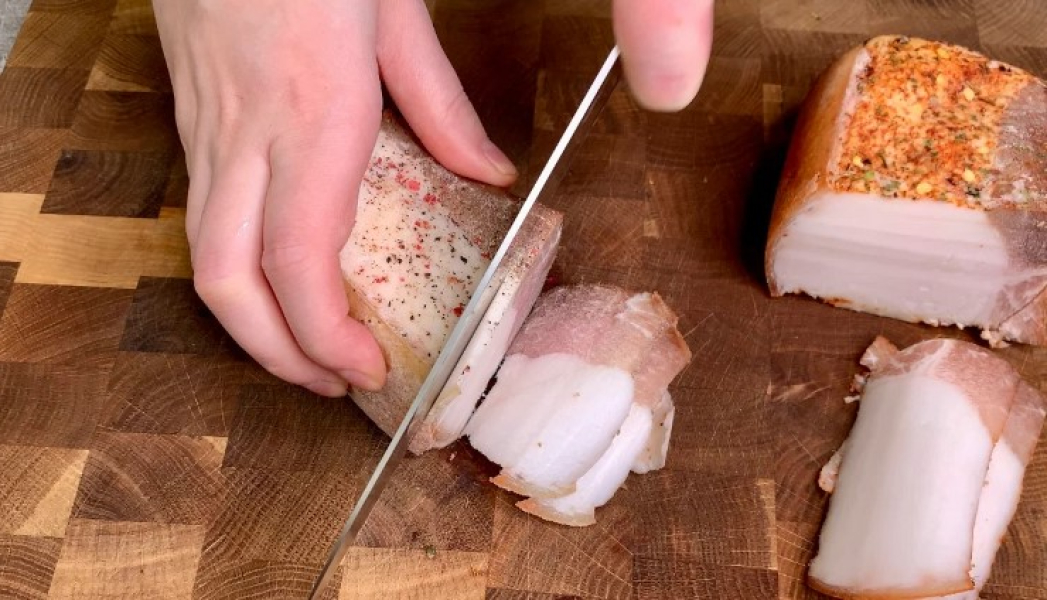 6. Через 5 днів дістаємо сало і добре обсушуємо за допомогою паперових рушників.