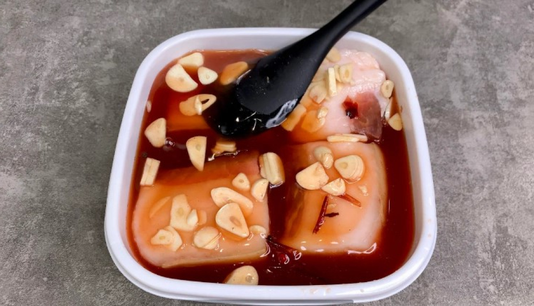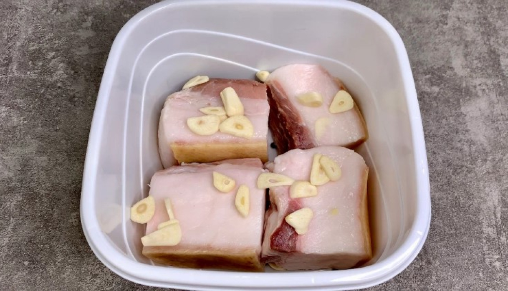 5. Заливаємо розсолом сало, накриваємо ємність кришкою і прибираємо в холодильник на 5 днів.