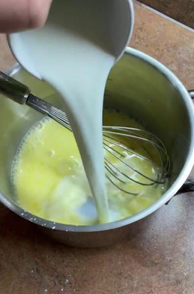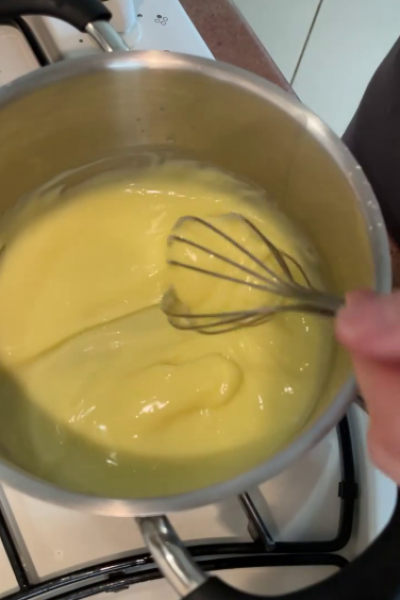 У сотейнику з’єднати жовток, цукор, крохмаль та ~80 мл молока.