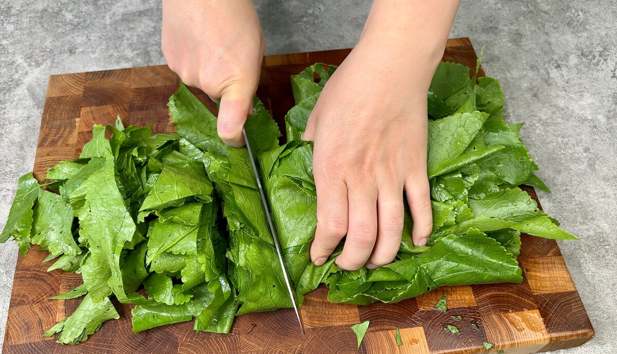 2. Беремо листя хрону, вирізаємо жорстку серцевину, довільно нарізаємо і відправляємо в чашу блендера.