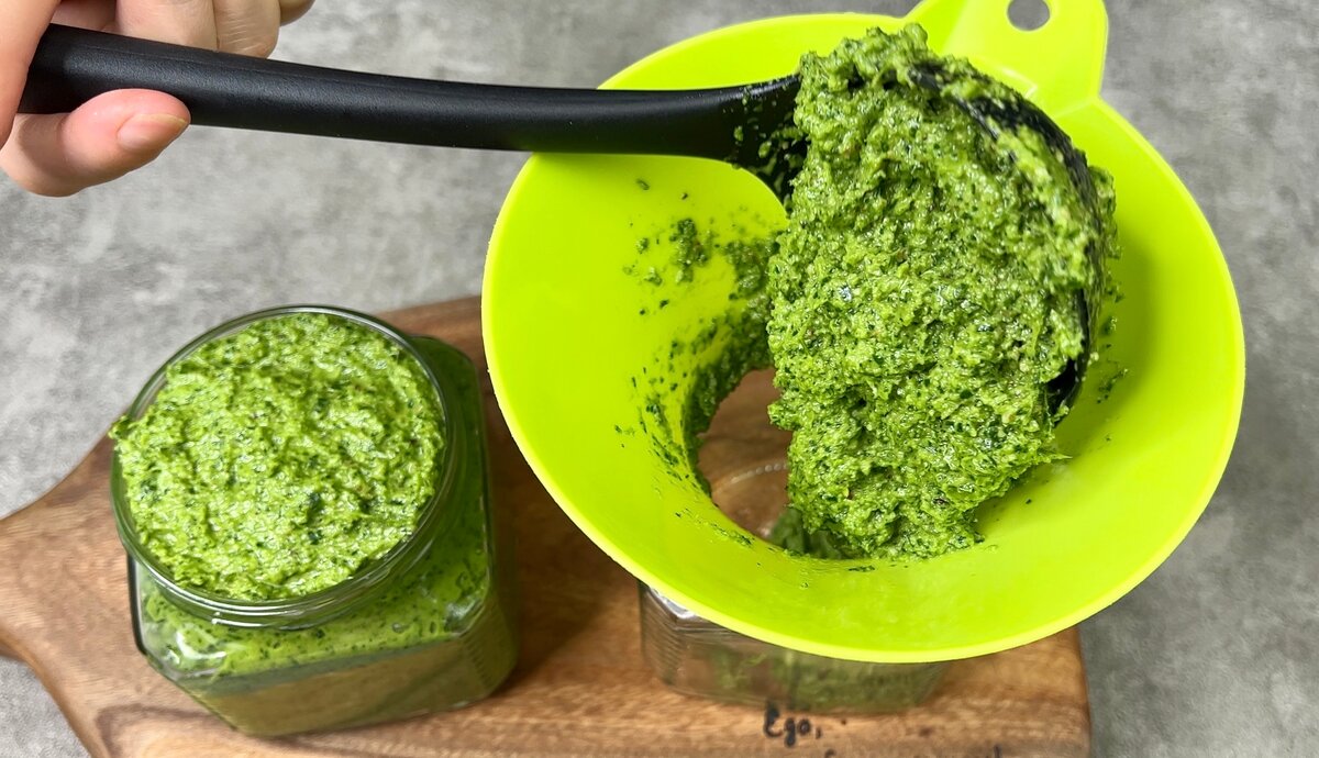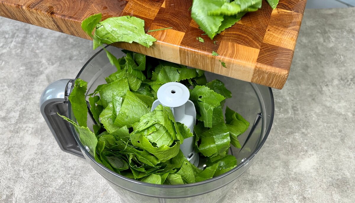 Готую весь сезон і на зиму обов’язково заготовлюю! Приголомшлива “зелена” паста з листя хрону. Заготовочка неймовірно смачна, дуже корисна, та ще й універсальна! Я використовую її в якості соусу ( вона чудово підходить до м’яса або риби), в якості приправи і добавки в різні маринади, і, просто, як пасту на шматочок свіжого хлібця. Поки сезон готую і зберігаю в холодильнику, а вже під кінець сезону роблю кілька баночок на зиму. Якщо для вас рецепт в новинку, спробуйте обов’язково, і смачно і дуже корисно!