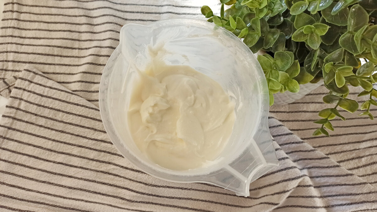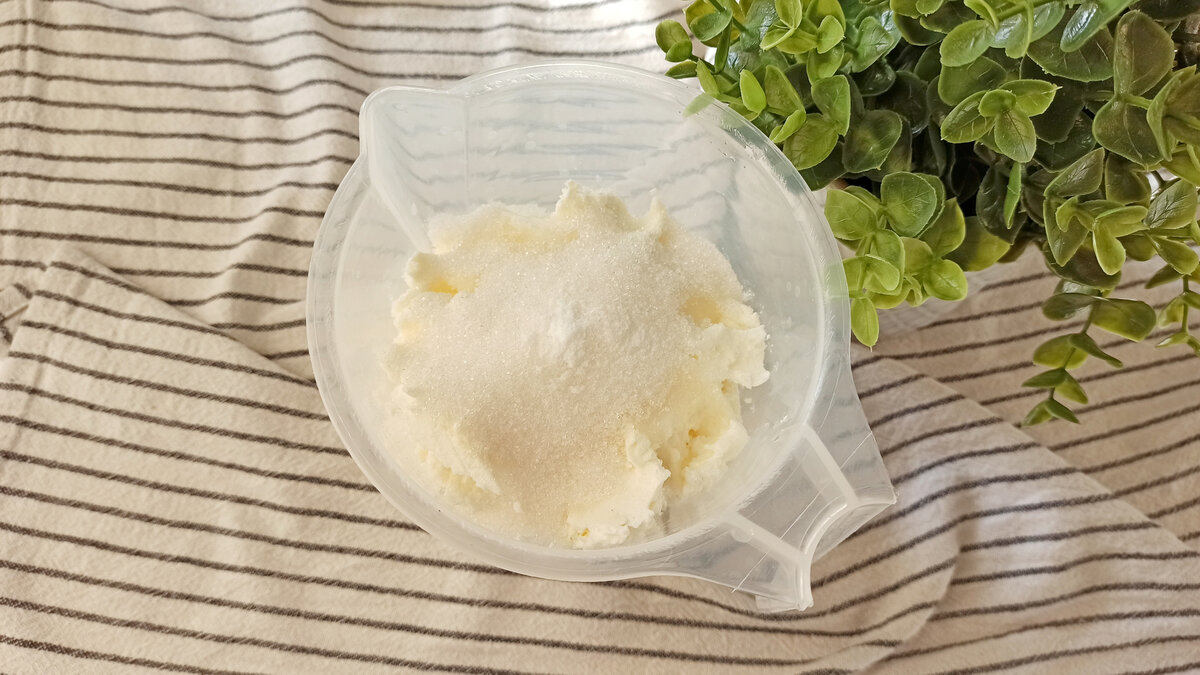 2. Змішуємо сир, сметану, цукор і ванільний цукор. Пробиваємо масу погружним блендером до однорідної консистенції.