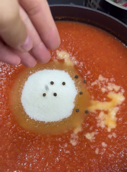 додати сіль, цукор, спеції, великими шматками гострий перець, оцет.
