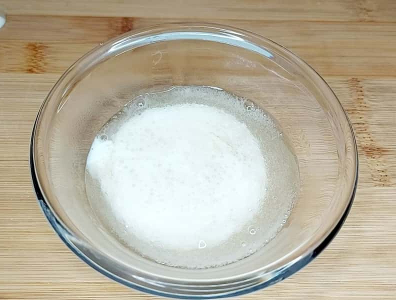 1. Желатин залити холодною водою, перемішати та залишити на 5-10 хвилин. Після того, як він набухне розпустити його в мікрохвильовій печі, кожні 10 секунд меремішуючи. Піде приблизно 20-30 секунд.