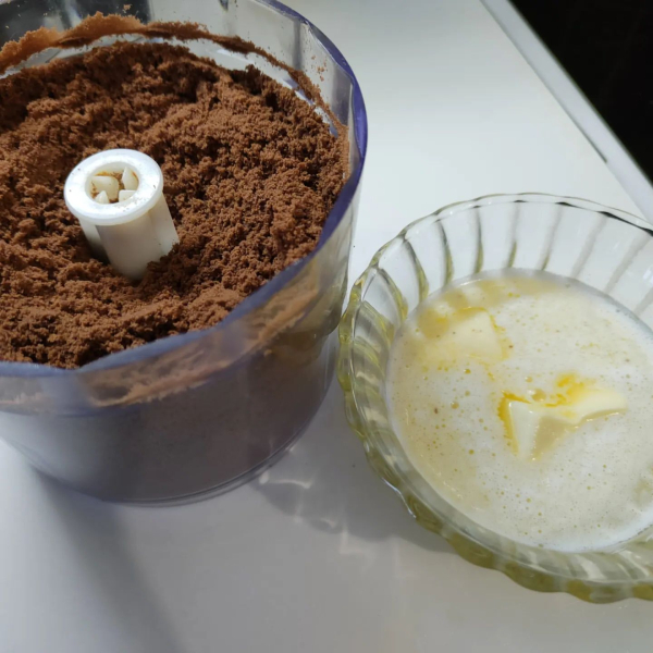 Ломаємо печиво, подрібнюємо в крихту блендером або робимо іншим способом.