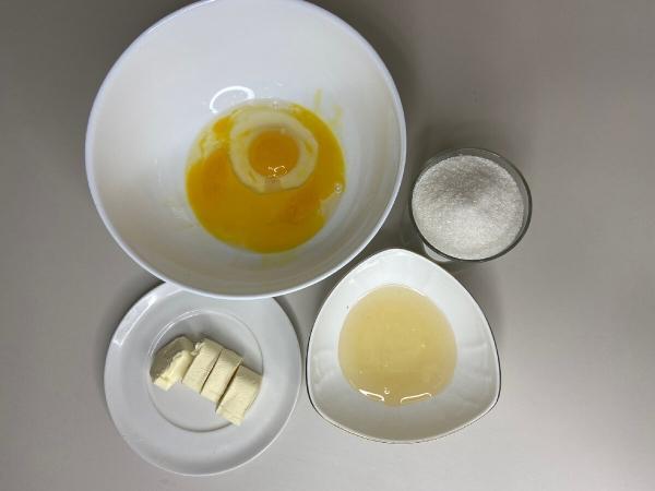 Яйця з’єднати з цукром, медом і маслом кімнатної температури.