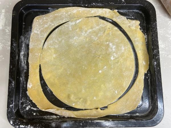 Розкочуємо кожну частину тіста на присипаній борошном поверхні.