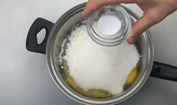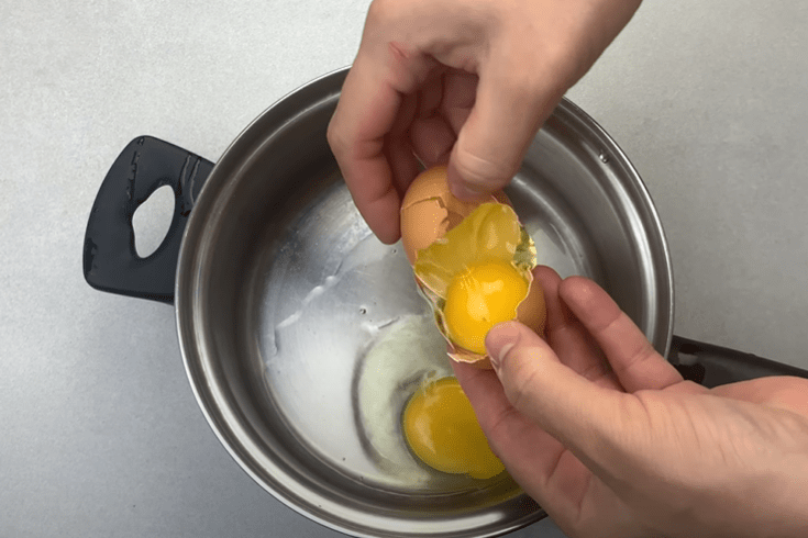 У каструлю або сотейник розбиваємо курячі яйця.