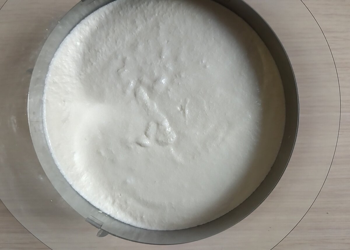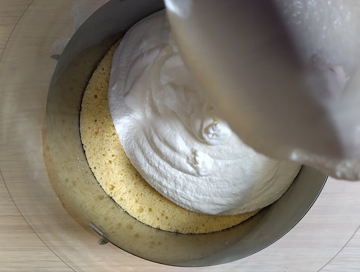 Накриваю другою половиною коржа і вливаю залишивше суфле.