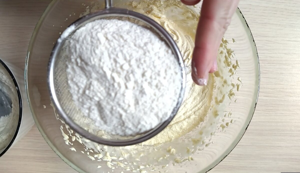 Просіюю отриману суміш у збиті жовтки.