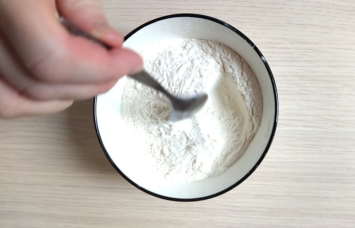 Борошно перемішую з розпушувачем.