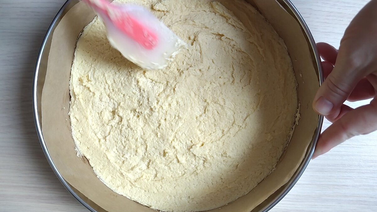 У роз’ємну форму викладаю тісто, злегка розрівнюючи.