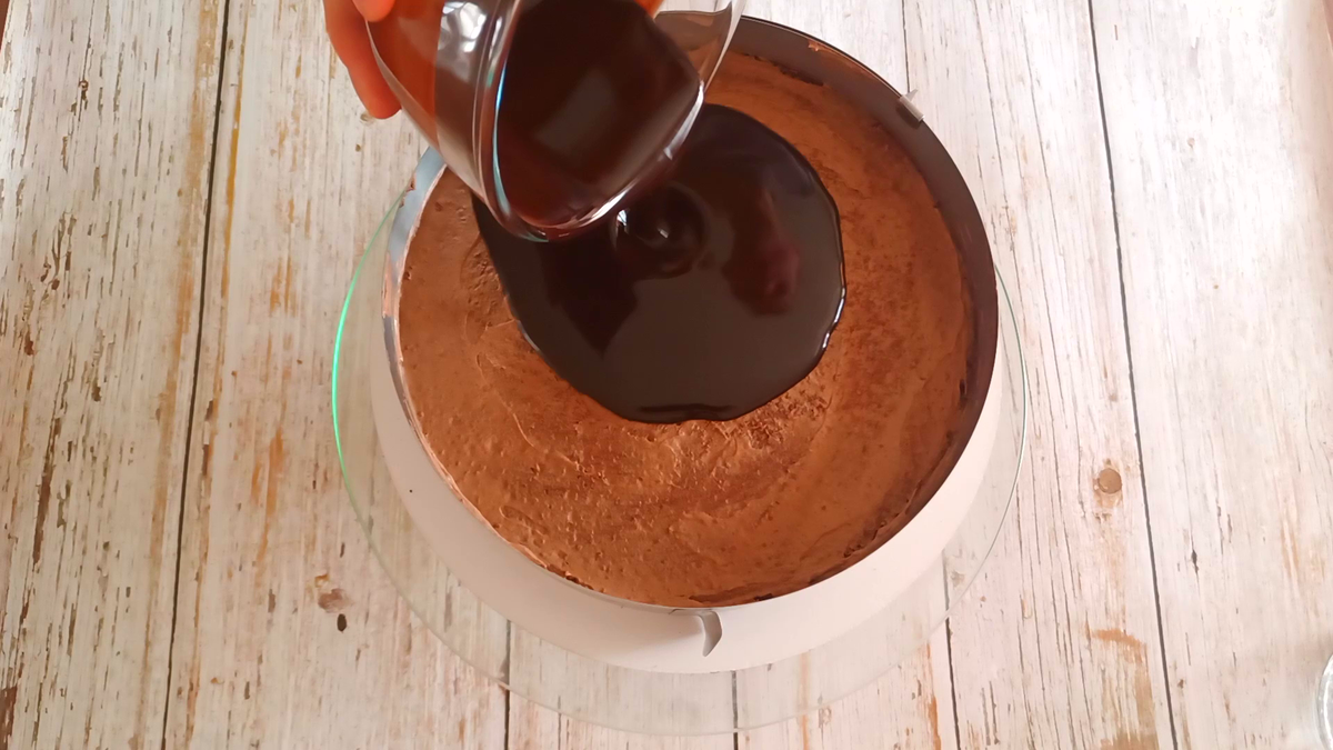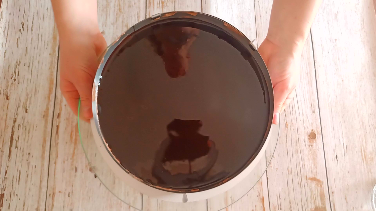 Обертовими рухами розподіляю глазур по поверхні торта. Забираю торт в холодильник, щоб глазур застигла на 20 хвилин.