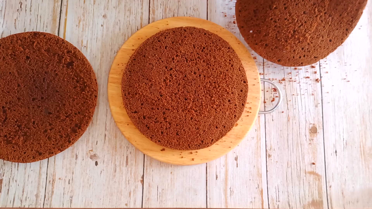 Холодний бісквіт розрізаю на три бісквітних коржа.