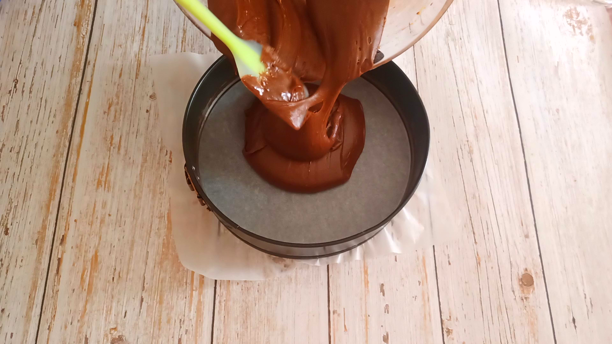 У форму діаметром 25 сантиметрів з попередньо вистеленим пекарським папером, викладаю все тісто.