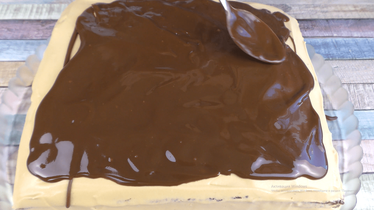 Покриваємо глазур’ю верх торта. Розрівнюємо.