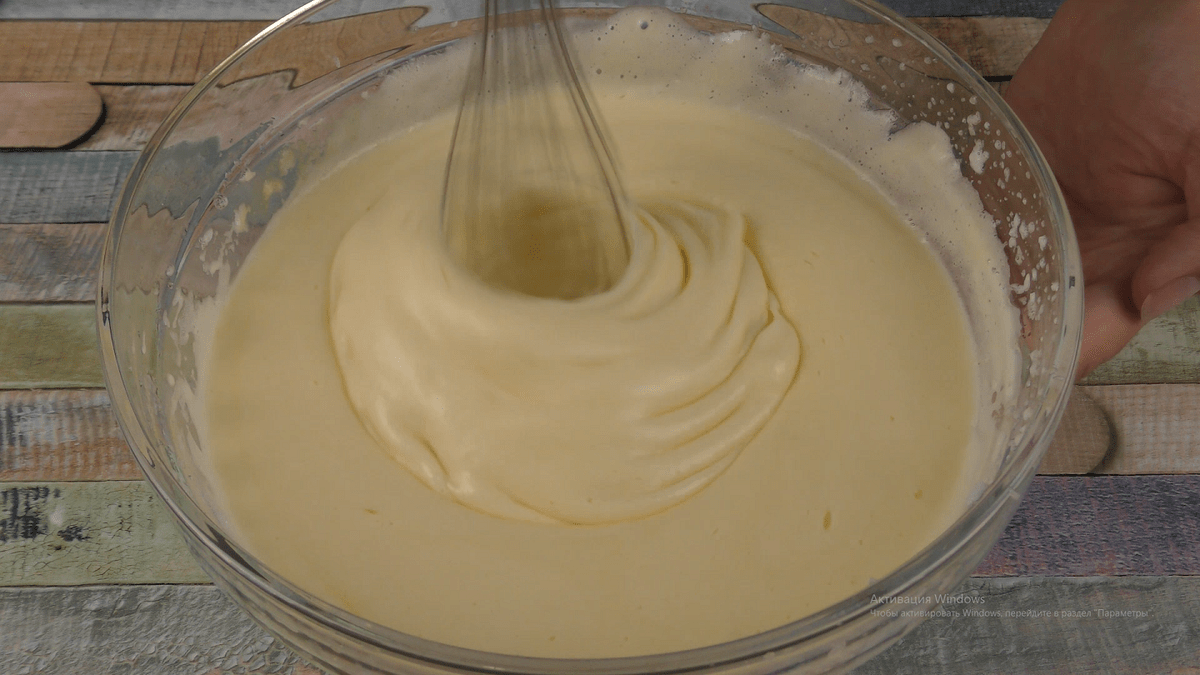 3 жовтка трохи збовтуємо виделкою і виливаємо до білків. Перемішуємо вінчиком.