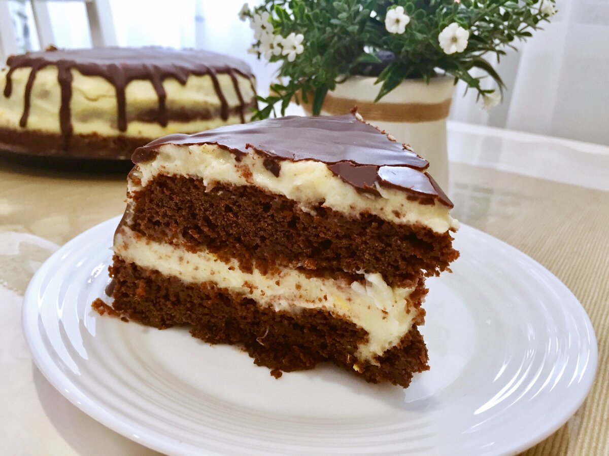 Корж розрізаємо на 2 частини і збираємо торт.