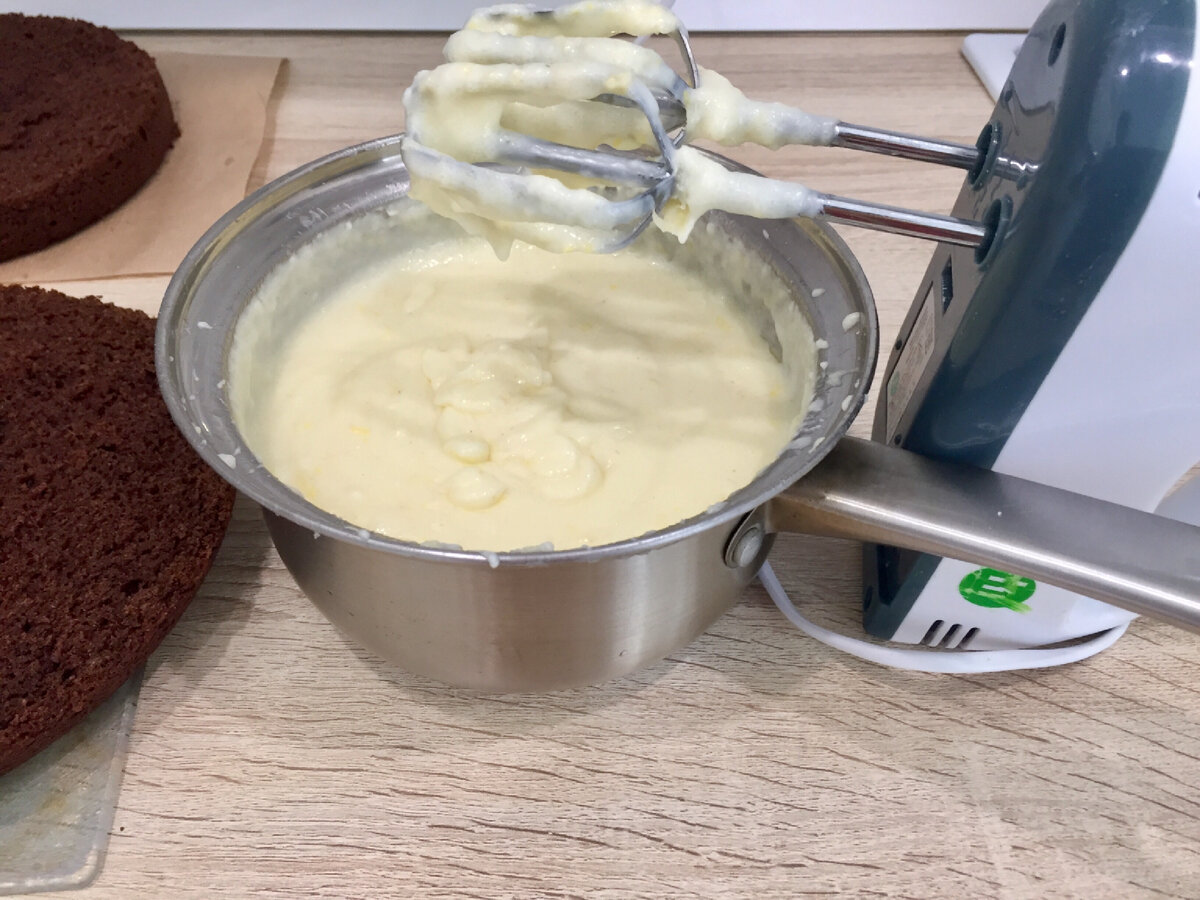 Замішуємо тісто для великого коржа, який потім розріжемо на 2 частини.