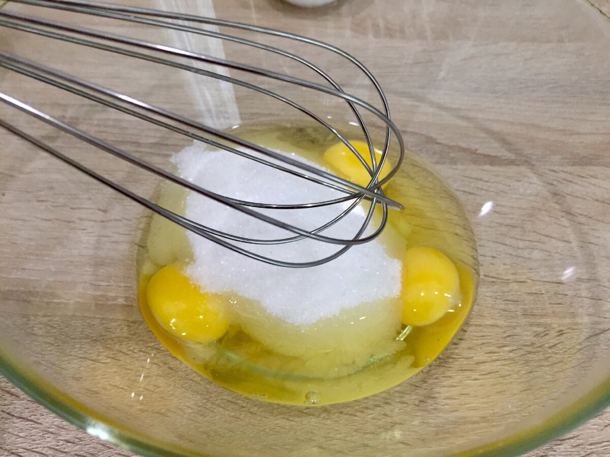 Цукор і яйця злегка збиваємо вінчиком.
